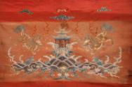About MeThis Chinese silk banner is embroidered with flowers, candles, bats, dragons, pagodas and cresting blue waves. The bat symbolises happiness in Chinese culture.