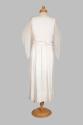 About MeThis dress is part of a wedding outfit with matching veil, stockings, shoes, gloves and a handkerchief, all worn by an Aberdeen bride to her wedding at Kelman Memorial Church, Peterculter, on the 28th of June 1923.The marriage of Lady Elizabeth Bowes-Lyon to the future King George VI took place in the same year. There was so much hype about Lady Elizabeth's bridal gown leading up to the big day that the 'Daily Sketch', a British tabloid newspaper, was permitted to publish a drawing of the dress before the event. Although this dress has a shorter hemline than the gown worn by Lady Elizabeth, it features the same deep neck-line, loose fitting bodice and drop waist, which was fashionable at the time, as well as handkerchief sleeves similar to those found on Lady Elizabeth's bridesmaids' dresses. The decoration on this dress is simpler by comparison, with its delicate row of pearls on the sleeves and orange blossom at the waist.