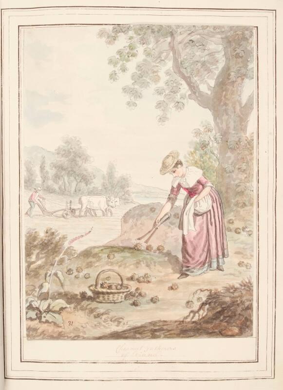 Chestnut Gatherers of Loiana, leaf from 'A Collection of Dresses by David Allan Mostly from Nature'