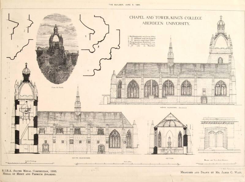 Plans of Local Architectural Features - Chapel and Tower, King's College, Aberdeen University (printed page)