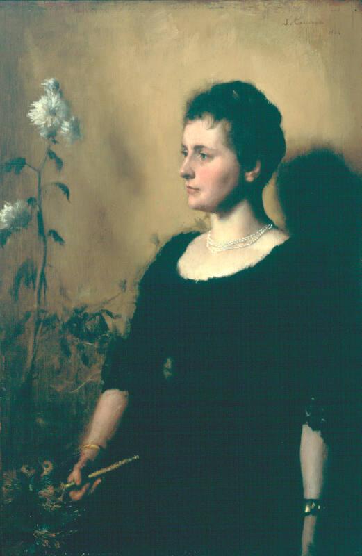 About MeJames Cadenhead was born in Aberdeen, the only son of the Procurator-Fiscal. He received artistic encouragement from John Forbes White, a prominent flour miller and art collector. Cadenhead attended the Royal Scottish Academy schools in Edinburgh and in 1882, he went to Paris to study at the atelier of Carolus-Duran. The linear, simple composition, floral arrangement and subtle tonalities of this portrait evince the new aesthetic that was deeply indebted to Whistler and to Japanese art.