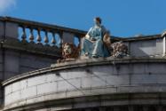 About MeThis colourful terracotta figure of the Roman goddess of Plenty, Ceres (or in Greek Demeter) is located on top of the building on the corner of Union Street and King Street and is visible from Castle Street.Chosen to represent the prosperity in Aberdeen in teh 1840s, the sculpture was designed by local artist James Giles for the portico of the North of Scotland Bank, designed by Archibald Simpson in 1840. The goddess is accompanied by a British lion and holds a cornucopia of the fruits of the earth. The London firm of Nelson Routledge Lucas and Company modelled this figure.