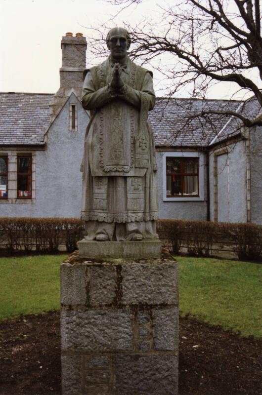 The sculptor Alexander Brodie (1829-1867) created the piece in 1859, just a year after his return to Aberdeen from Edinburgh. During his time in Edinburgh, Alexander Brodie had studied under Robert Scott Lauder (1803-1869) at the Trustee's Academy. Brodie used the local medium of granite to execute the statue of Father Charles Gordon, which stands upon a plinth of granite blocks. Brodie created other sculptural pieces for the city and for neighbouring towns such as Huntly.