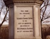 Designed by John Cassidy of Manchester and carved by Arthur Taylor in 1883it has a chamfered panelled plinth with the inscription "This park was presented by Elizabeth Crombie Duthie to the City of Aberdeen, and was opened by H.R.H. Princess Beatrice on 27th September 1883".