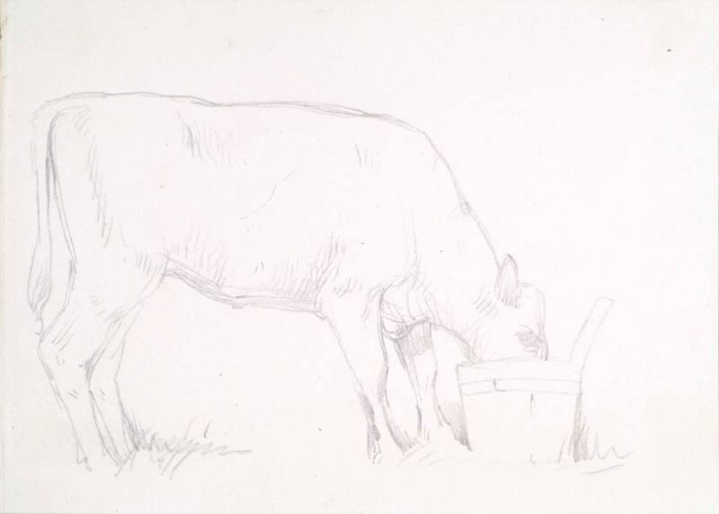 A Cow Drinking from a Wooded Pail