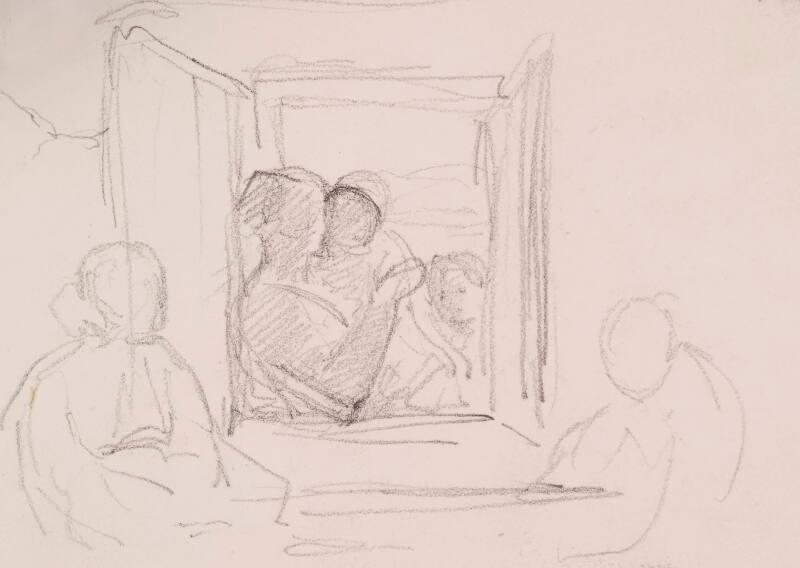 Study of Window-Two Figures Indoors and Three Outdoors
