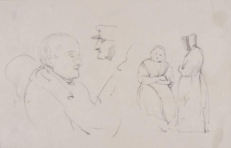 Study of Two Heads and Shoulders and Two (full-length) Women