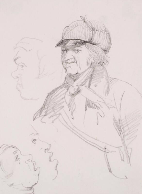 Study of a Man in Deer Stalking Attire, Three Caricatures