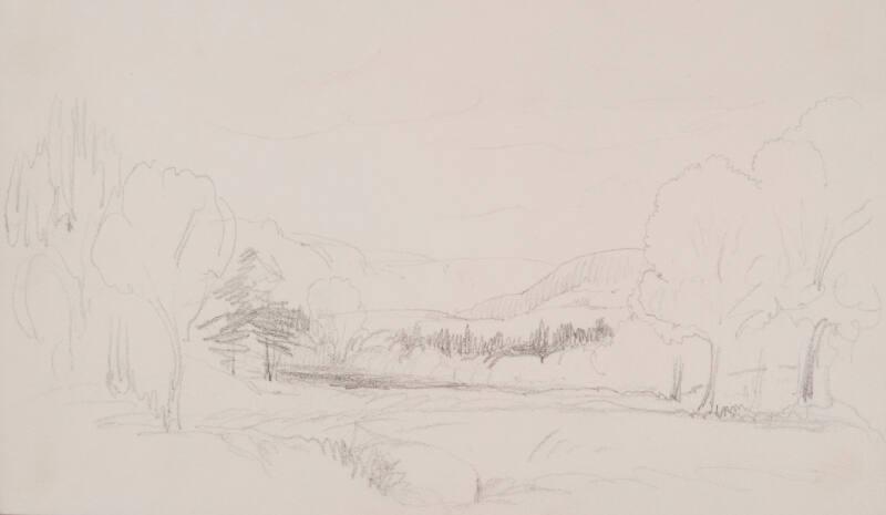 Landscape of Field Surrounded by Trees and Hills Beyond