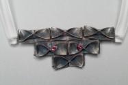 About MeThis neckpiece is one of a small collection of body adornments demonstrating the joint research of the two makers into new technology.The collaboration between Keith and Morris looked into metal techniques applied to textile structures. They have specifically worked using Electroforming which replicates sculptural shapes with partial or minimal layers of fine silver, combining potential combinations of soft and hard forms.