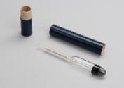 3. Glass tube with large black end and smaller end with measurements. Reads 'SH DIABETES British Make'.