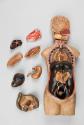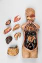 About MeModel torso with sectioned chest and abdomen, removable model organs and model human head.1. Cut-away torso made of plaster of Paris and including a few organs and space to place other organs listed in set.