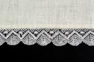 About MeThis table mat was made by Hanni Sanders in the late 20th century. The edging was worked in the "Madagascar" pattern. It was made with 17 pairs of bobbins and linen thread. Lace making was introduced to New Pitsligo, Aberdeenshire, in the 1820s. It became a thriving industry in north- east Scotland. Queen Victoria is said to have been particularly fond of New Pitsligo lace.