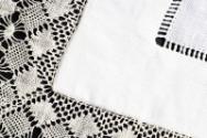 Bobbin lace is made by braiding and twisting lengths of thread, which are wound on bobbins to manage them. As the work progresses, the weaving is held in place with pins set in a pillow. The placement of the pins is usually determined by a pattern.