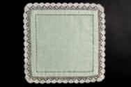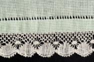 Bobbin lace is made by braiding and twisting lengths of thread, which are wound on bobbins to manage them. As the work progresses, the weaving is held in place with pins set in a pillow. The placement of the pins is usually determined by a pattern.