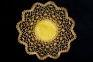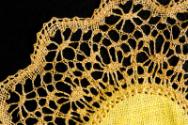 Bobbin lace is made by braiding and twisting lengths of thread, which are wound on bobbins to manage them. As the work progresses, the weaving is held in place with pins set in a pillow. The placement of the pins is usually determined by a pattern.