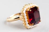 MediumYellow metal/ Red stone/ Faux seed pearls