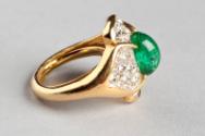 It first became popular to wear rings like this one at cocktail parties in the 1940s. Their large size and bright colours were designed to attract attention, although the gemstones used were often imitations.
