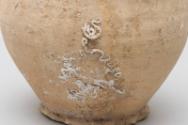 About MeThis jug-shaped clay pot is formed from three parts: the body of the pot, a circular base and a pulled handle on one side near the top. The pot has a fluted neck and a lip around the rim. Covering the surface of the pot are numerous white, fossil-like sea creatures, which bespeaks the particular provenance of this pot: it was found in the nets of a local fisherman around fifteen miles off the coast of Aberdeen. The pot is Roman, made in the second or third century A.D. in Southern Britain or the Rhineland.20th Century