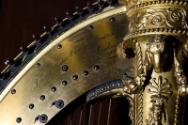 About MeWooden harp with a black and gold lacquered frame decorated with classical figures, musical instruments and flowers. There is a Corinthian pillar to the front of the harp. The harp also features a rams head, swags, anthemions, acanthus and four sphinx heads. The harp stands on four claw feet two of which are carved and two have been left plain. There are eight pedals, 43 strings and a sound box.c.1820