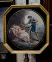 About MePair of beechwood pole or fire screens. Both are similar in design with a tall beechwood pole featuring a gilt urn ornament and screens attached with two brass rings and screws. The poles sit on a tripod foot.late 18th Century