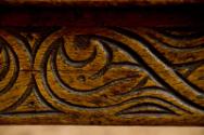 About MeOak bench comprising a single plank seat with carved panelled sides, trestle ends with 4 turned baluster legs featuring a round section with block feet. There are also 2 short stretchers and a central stretcher with similar carving.17th century