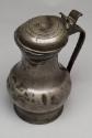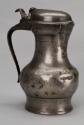 About MePewter vessel known as a measure or Tappit Hen with handle, hinged, domed and circular lid. The body is pot- bellied with a waisted neck, which widens to the rim.More About Me