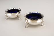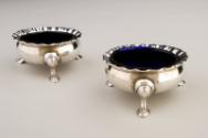 About MeShallow round bowl with fluted rim standing on 3 double ribbed feet. With blue glass liners.Currently attributed to Coline Allan, although research is ongoing into the variant CA unches attributed to Coline Allan and Charles Allan of Jamaica who also used CA for his mark.