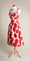 About MeThis white sun dress has a striking red floral pattern. Colourful floral patterns look joyful and were popular in the 1950s as a reaction against the austerity and suffering of the Second World War.