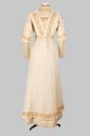 Beautiful but restrictive dresses such as this reached their height of popularity in the years before World War One but after the war middle- and upper-class women demanded greater simplicity and freedom of movement.