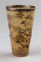 About MeThis is one of a pair of silver mounted, yellow horn beakers with a wide rim that tapers to its base. It features ornate, applied decoration that depicts birds and flowers in gilt bone and mother of pearl. The pair are dated to around 1883 and attributed to the successful firm of John and Frank Pairpoint.More About Me