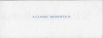 About MeFolding blue card with "A Classic Monostich" written on the front. Both the inside pages of the card have large blue text typed across them. When open they read "Schooner, sail your snows to the pole".This work is part of an archive that belonged to Joyce Laing OBE. The artist, Ian Hamilton Finlay, was a personal friend and sent her an example of each new poem print and multiple as it was made.