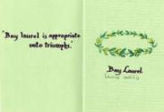 About MeBooklet by Joyce Laing, probably made for Ian Hamilton Finlay to commemorate the removal of artworks from Little Sparta during the ongoing dispute between the artist and Strathclyde Regional Council. The booklet is backed with black card and the title is applied on the front with gold transfers. Inside there are small ink drawings and gouache paintings of garden herbs with handwritten quotes about the herbs on the facing pages. On the back page the booklet is inscribed: "remembrance and love, Joyce".This work is part of an archive that belonged to Joyce Laing, OBE. The artist, Ian Hamilton Finlay, was a personal friend and sent her an example of each new poem print and multiple as it was made.