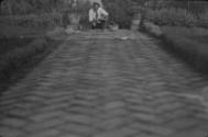 About MeFour negatives contained within a white paper envelope, each depicting areas of El Foolk, one of James McBey's homes in Tangier, Morocco. An annotation on the envelope explains that two negatives are views of El Foolk from Jews' River, while the other two show the construction of a brick path.