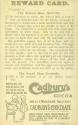 About MeThere were 32 cards in the series (23 are in AAGM's collection see also ABDMS082368.1 - 082368.23), which was published in 1910 for use in Schools and Sunday Schools as a prize for good attendance. The first edition was published with 'Compliments of the Proprietors of Cadbury's Cocoa' printed on the front. A slightly changed version was re-issued in the 1930s with 'Compliments of Cadbury Bros. Ltd.' printed on the front.