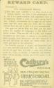 About MeThere were 32 cards in the series (23 are in AAGM's collection see also ABDMS082368.1 - 082368.23), which was published in 1910 for use in Schools and Sunday Schools as a prize for good attendance. The first edition was published with 'Compliments of the Proprietors of Cadbury's Cocoa' printed on the front. A slightly changed version was re-issued in the 1930s with 'Compliments of Cadbury Bros. Ltd.' printed on the front.