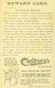 About MeThere were 32 cards in the series (23 are in AAGM's collection see also ABDMS082368.1 - 082368.23), which was published in 1910 for use in Schools and Sunday Schools as a prize for good attendance. The first edition was published with 'Compliments of the Proprietors of Cadbury's Cocoa' printed on the front. A slightly changed version was re-issued in the 1930s with 'Compliments of Cadbury Bros. Ltd.' printed on the front.