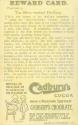 About MeThere were 32 cards in the series (23 are in AAGM's collection see also ABDMS082368.1 - 082368.23), which was published in 1910 for use in Schools and Sunday Schools as a prize for good attendance. The first edition was published with 'Compliments of the Proprietors of Cadbury's Cocoa' printed on the front. A slightly changed version was re-issued in the 1930s with 'Compliments of Cadbury Bros. Ltd.' printed on the front.