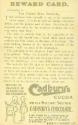 About MeThere were 32 cards in the series (23 are in AAGM's collection see also ABDMS082368.1 - 082368.23), which was published in 1910 for use in Schools and Sunday Schools as a prize for good attendance. The first edition was published with 'Compliments of the Proprietors of Cadbury's Cocoa' printed on the front. A slightly changed version was re-issued in the 1930s with 'Compliments of Cadbury Bros. Ltd.' printed on the front.