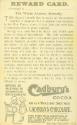 About MeThere were 32 cards in the series (23 are in AAGM's collection see also ABDMS082368.1 - 082368.23), which was published in 1910 for use in Schools and Sunday Schools as a prize for good attendance. The first edition was published with 'Compliments of the Proprietors of Cadbury's Cocoa' printed on the front. A slightly changed version was re-issued in the 1930s with 'Compliments of Cadbury Bros. Ltd.' printed on the front.