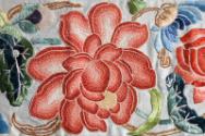 The needlework is particularly fine in this example, which has been sewn with a number of stitches, including satin stitch, couching and the Peking Knot. (Peking is now Beijing).