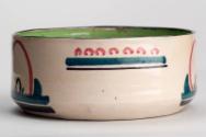 Majel Davidson produced ceramics with art deco designs at Gushetneuk Pottery, Cults. This bowl filled with freshly cut roses and foliage would have made an attractive centrepiece in the home.