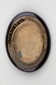 About MeOval French jet mourning locket featuring an oval black glass front with cushioned edges and an incised floral design with four flowers, which has been decorated with gold (possibly enamel) and clear stones (possibly glass) at the centre of each flower. On the back of the black glass front is an oval gold metal mount featuring a hinged glass fronted reserve. Presumably this would have originally held either a portrait or perhaps a lock of hair.