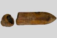 About MeThe casing of a World War II bomb, in two separate parts having been dismantled by the bomb squad. The casing is in poor condition having been corroded over time, and as such any maker’s marks that may have been there are no longer visible.