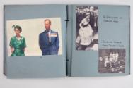 The album is full of scraps (black and white and colour) of the Queen's coronation tour, mostly taken from newspapers and magazines. These have been annotated with date and places in clear script.