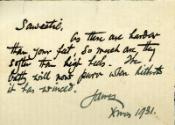 "Sweetie, as these are harder than your feet, so much are they softer than high heels. The [illegible] will now purr when hitherto it has winced, James, xmas 1931"