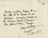 "Should anything happen to me this letter should be handed to Mr. Robinson, managing director of the Tranaco Bank of Panama, Rue Jeanne d'Arc, Tangier."