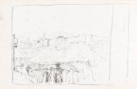 About MeSketch drawn by James McBey during his time as Official War Artist in Egypt from 26 May 1917, depicting a landscape, possibly Jerusalem. The sketch is kept within a sketchbook, along with a series of other related drawings.This object is part of an archive that belonged to Marguerite McBey. As a result of her generosity, Aberdeen Art Gallery holds the largest archive of James McBey's work, including prints, drawings, sketchbooks, oil paintings and memorabilia such as this sketch.