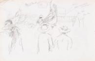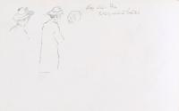 About MeSketch drawn by James McBey during his time as Official War Artist in Egypt from 26 May 1917, focussing on hats worn by three male figures. McBey has annotated the sketch to indicate that the hats have white and blue straps. The sketch is kept within a sketchbook, along with a series of other related drawings.This object is part of an archive that belonged to Marguerite McBey. As a result of her generosity, Aberdeen Art Gallery holds the largest archive of James McBey's work, including prints, drawings, sketchbooks, oil paintings and memorabilia such as this sketch.