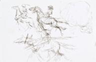 recto: Men on Horseback, verso: sketch, Soldiers and Cannon (Sketchbook - War)